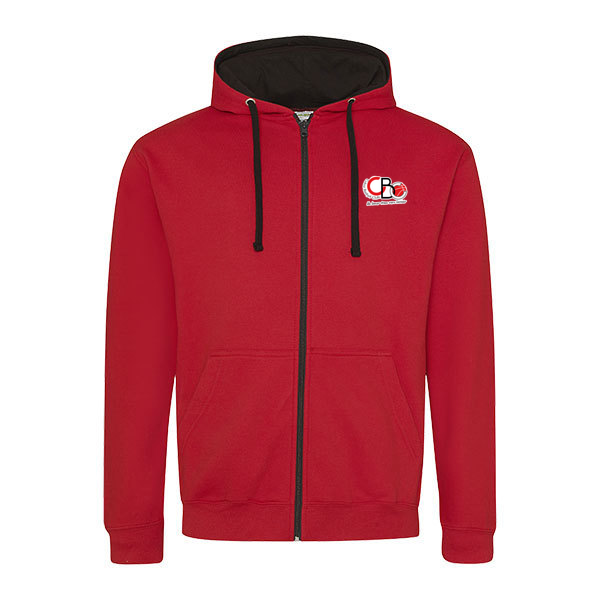 Sweat-shirt à capuche à zip intégral en plastique de couleur contrastée.